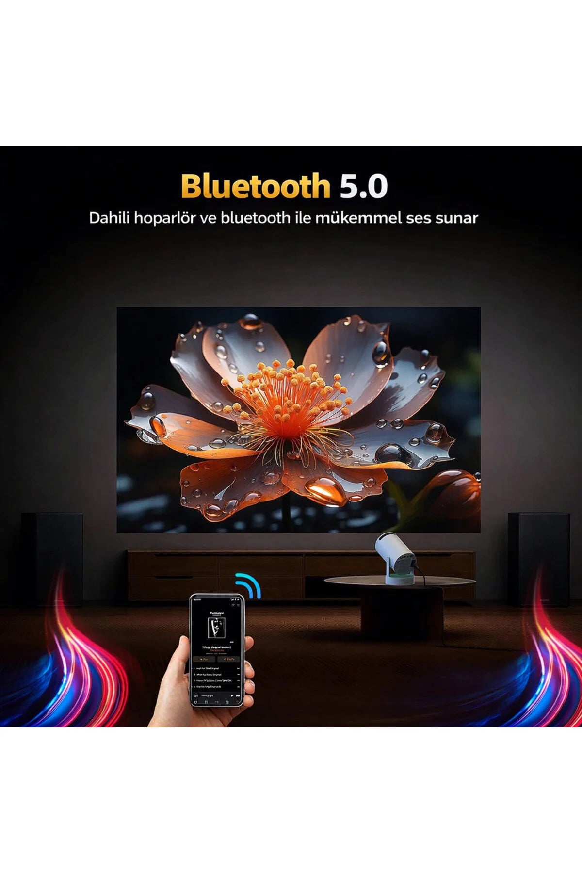 • Ev Sineması: Kablo kirliliği olmadan salonunuzu veya yatak odanızı dönüştürün.